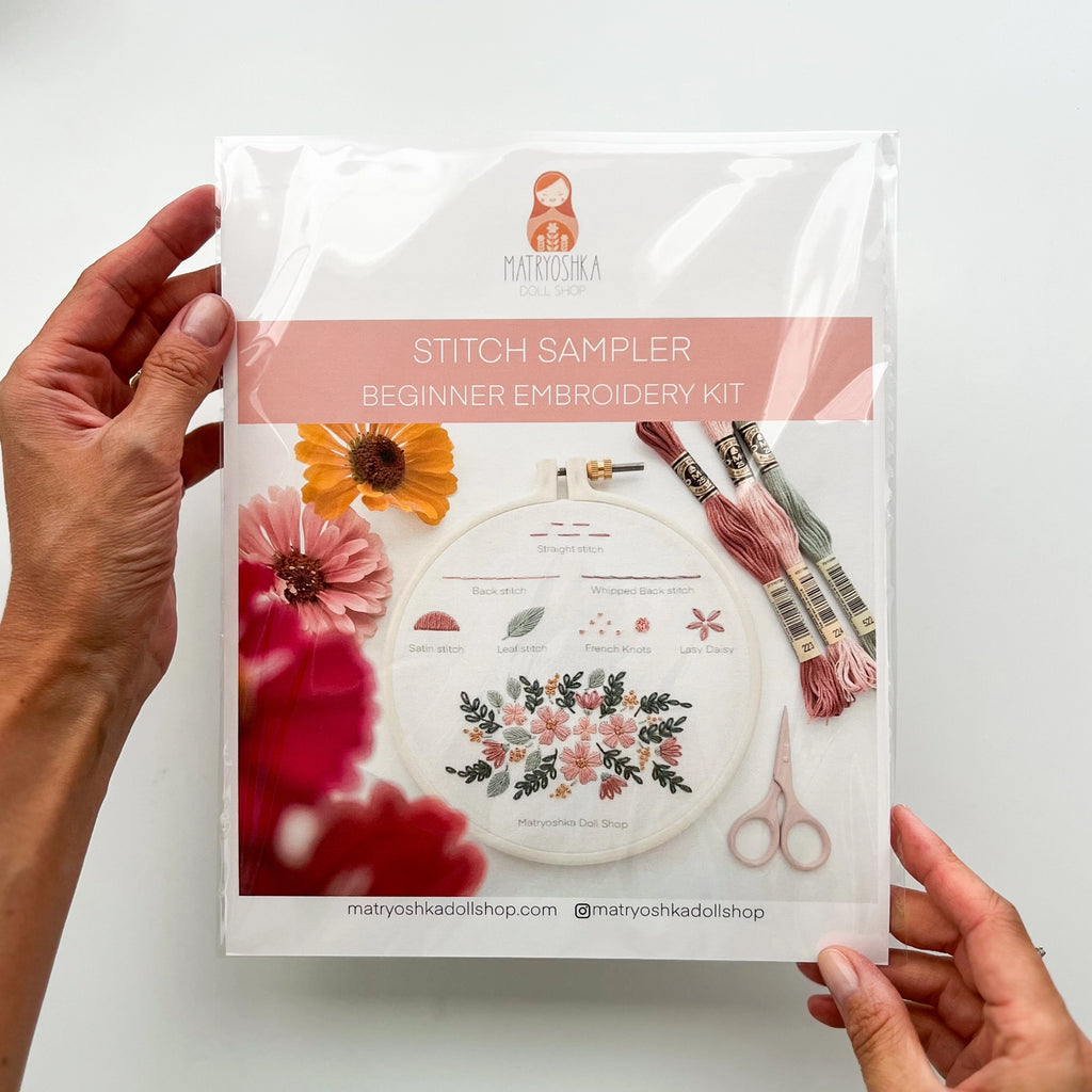 This Beginner Embroidery Kit provides all the essentials to start modern embroidery with ease. Featuring a fabric pre-printed with a stitch sampler pattern, it eliminates the need for design transfers. Included is a QR code granting access to a detailed video tutorial and stitching instructions, allowing you to learn at your own pace either on screen or with printed guides. Ideal for newcomers, this kit combines convenience and expert guidance to help you confidently explore embroidery techniques.