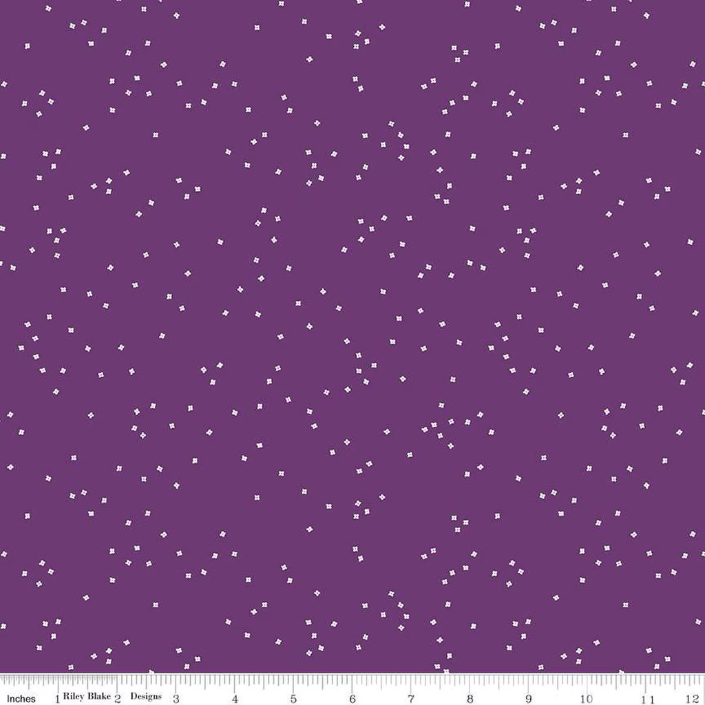 Floral blossoms on a deep eggplant purple base. A rich color choice for elegant quilts and garments.
