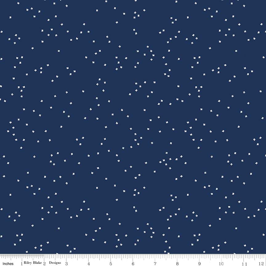 Elegant floral blossoms on a navy background. Great for timeless quilts, apparel, and home accents.