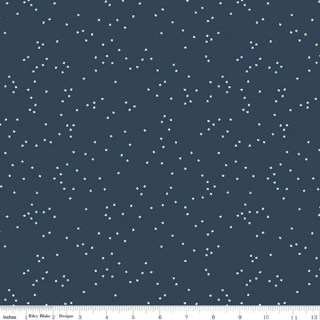 Floral blossoms on an oxford blue background. A refined tone for modern quilting and apparel.