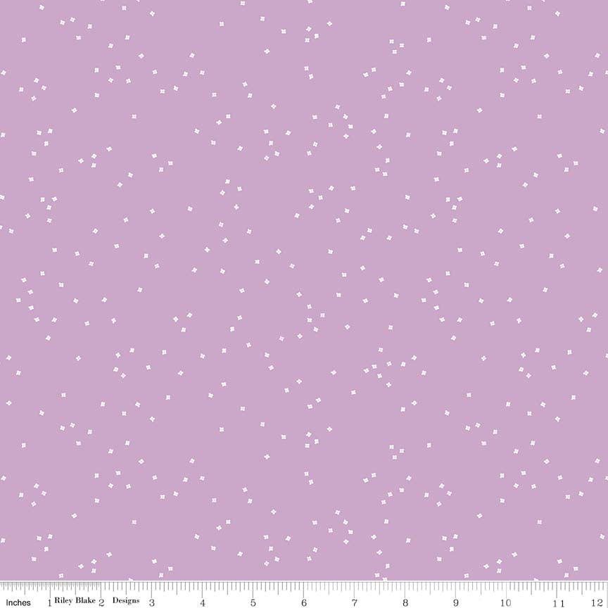 Floral blossoms on a wisteria purple background. A gentle color for elegant quilts and sewing projects.