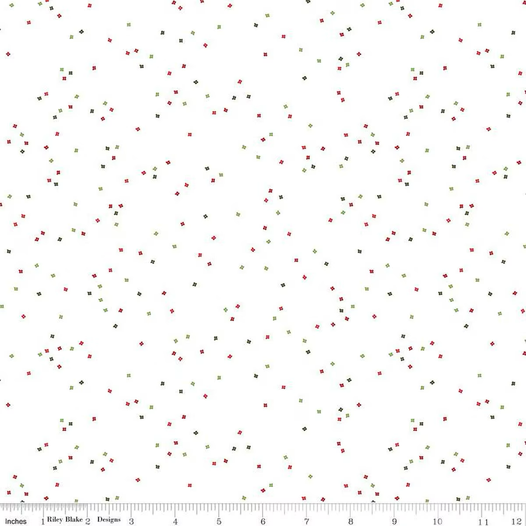 Festive floral blossoms on white with holiday colors. Ideal for Christmas quilting and decor.