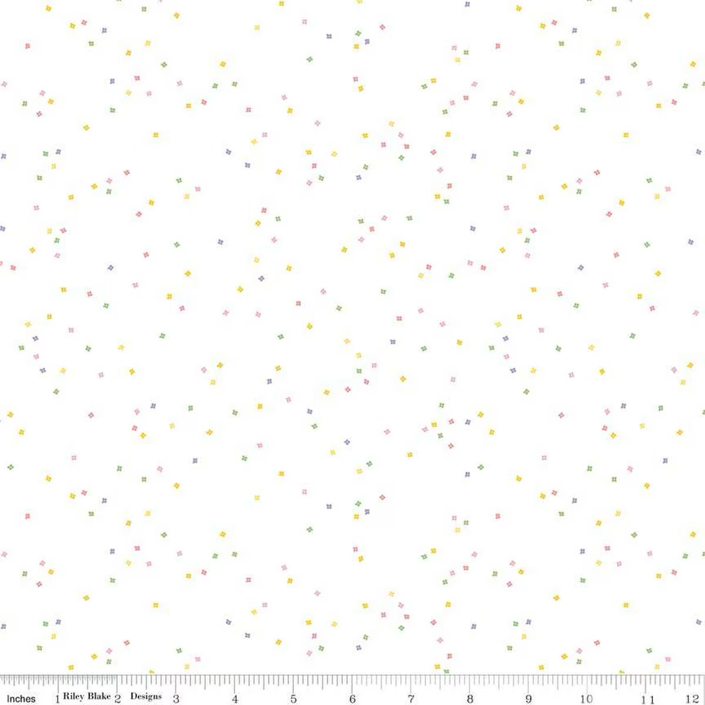Fresh spring colored floral blossoms on white. Perfect for seasonal sewing and light quilts.