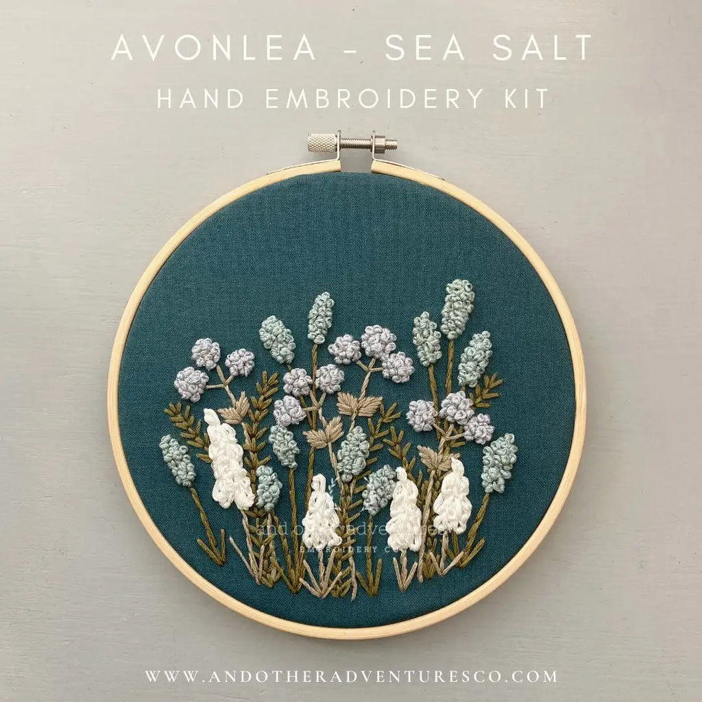 The Avonlea in Sea Salt Hand Embroidery Kit is an ideal beginner project, featuring pre-printed cotton fabric and a 6-inch embroidery hoop for easy handling. It includes full skeins of DMC embroidery floss and a quality embroidery needle, providing all essential materials. Along with detailed online stitch tutorials, the kit offers a comprehensive stitch guide packed with everyday tips and techniques. Please note that clothespins and scissors are not included. This kit is designed to support skill-building with clear instructions and reliable tools.