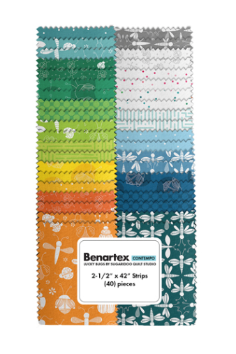 Get lucky with the charming Lucky Bugs Strip-Pie! This delightful Benartex collection features 40 pre-cut 2.5" x 42"-44" cotton strips bursting with whimsical bug-themed designs. Skip the cutting board and head straight to piecing—these ready-to-use strips make quilting faster and more fun. Crafted from 100% premium cotton, they're perfect for strip quilts, binding, or any project that needs a dose of creepy-crawly charm. Let your imagination take flight and create something buggy-beautiful!