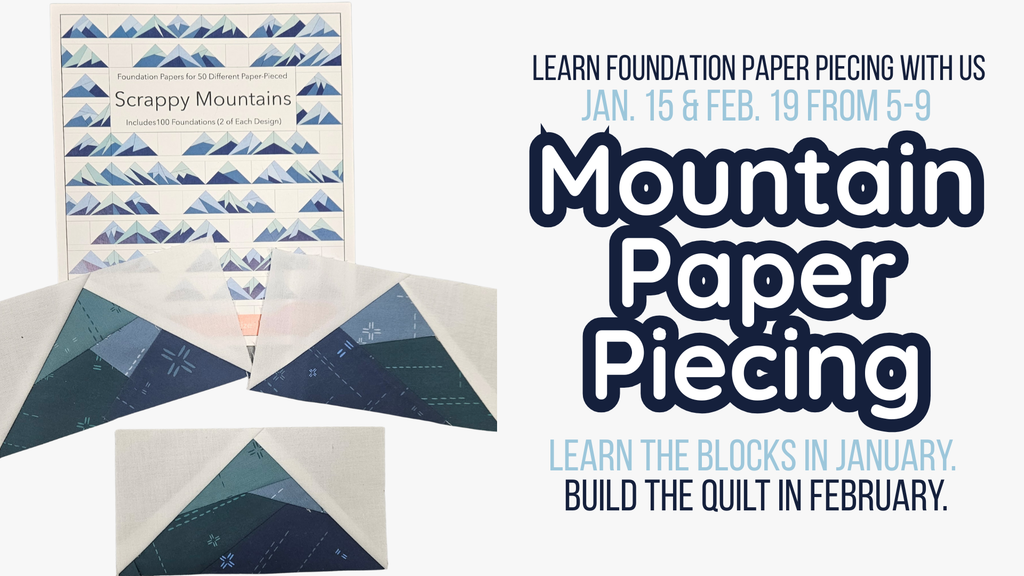 If you’ve been wanting a fresh project to kick off the new year, this two-part workshop is a great way to learn something new and use up those scraps you’ve been saving. Scrappy Mountains are simple, addictive blocks that help beginners build confidence with foundation paper piecing while creating something fun and unique.