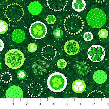 Add a splash of fun to your quilting projects with Paddy's Parade - Circles and Clovers! Made from 100% cotton, this playful fabric features lively circular patterns that bring energy and charm to any creation. Perfect for quilting enthusiasts looking to brighten up their designs with a cheerful touch.