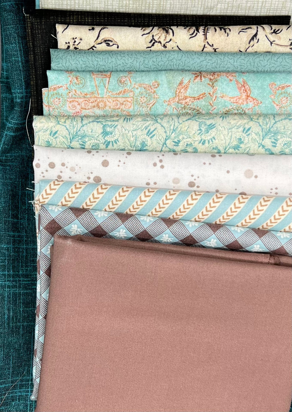 Experience the calming blend of browns and blues featured in this expertly crafted kit. Quilt finishes 50"x70"