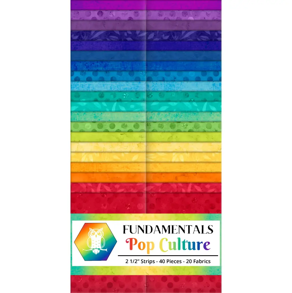 The Pop Culture Strip Pack features 42 pre-cut 2.5 inch strips from the Pop Culture colorstory in the Fundamentals collection by White Owl Textiles. These coordinated quilting cotton strips include balanced tones and subtle textures that work easily together in patchwork designs. Ideal for jelly roll quilts, borders, and strip pieced blocks, this bundle helps quilters build cohesive layouts without additional cutting.