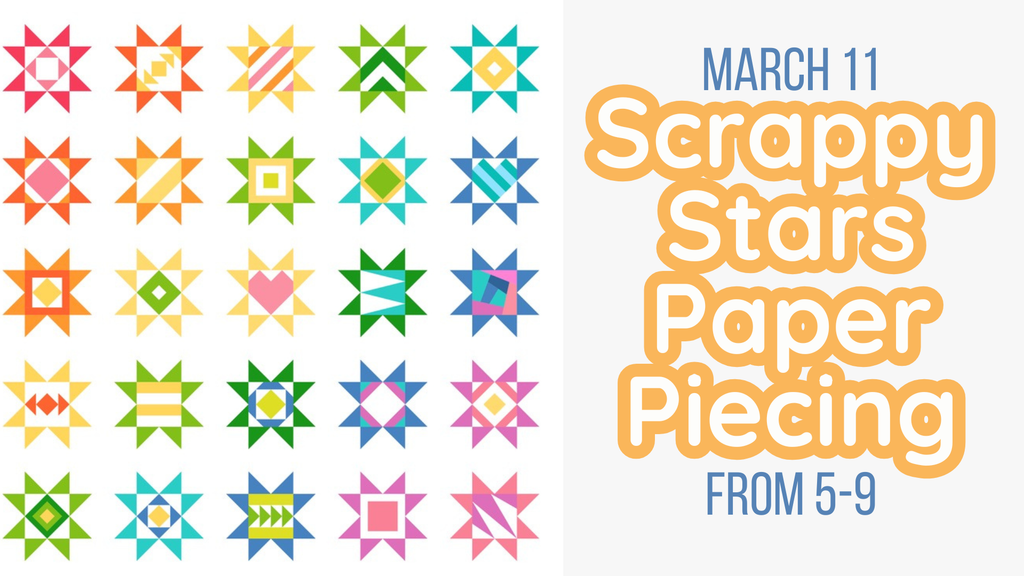 Turn your fabric scraps into striking six inch star blocks in the Scrappy Stars Paper Piecing Class at Fabric Bash. This hands on class focuses on foundation paper piecing techniques while creating bold, scrappy stars full of movement and personality.