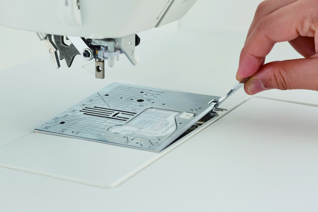 - Interchangeable Straight Stitch Feed System: Effortlessly switch to perfect straight stitch sewing with a revolutionary interchangeable Feed System. Create perfect stitches from beginning to end. No pulling, bunching, or pushing fabrics into the needle opening. Smooth handling for perfect piecing, close edges, curves, layers, and more. Perfection!