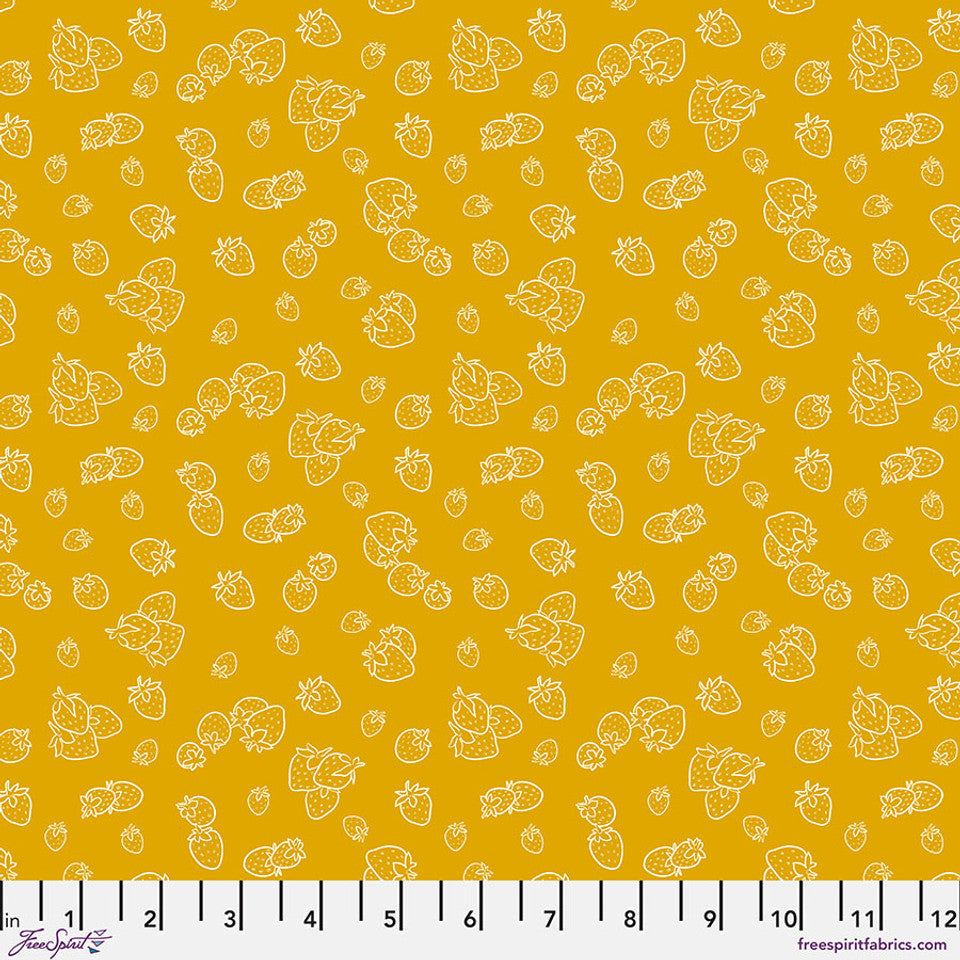 This yellow fabric features a vibrant strawberries pattern that brings a fresh, lively touch to any project. Designed for durability and refined aesthetics, it is well-suited for advanced sewing, quilting, and decorative applications where quality and visual appeal are essential.