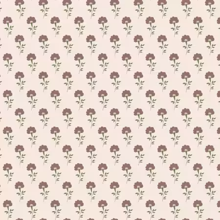 This fabric features a delicate and charming floral pattern with small, evenly spaced flowers in shades of muted red and green, set against a soft beige background. The design evokes a sense of vintage elegance, perfect for creating timeless garments or home decor items. The floral motifs are detailed yet simple, providing a subtle yet sophisticated aesthetic that can complement a variety of projects.