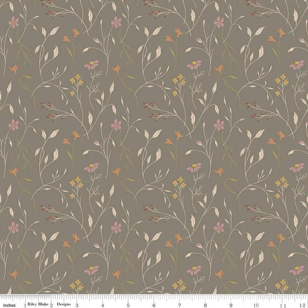 This medium gray main print offers elegant contrast without overpowering your quilt. Ideal for backgrounds, sashing, or focal pieces where you want a modern, muted look. Coordinates smoothly with Taupe, Latte, and Canyon Rose.