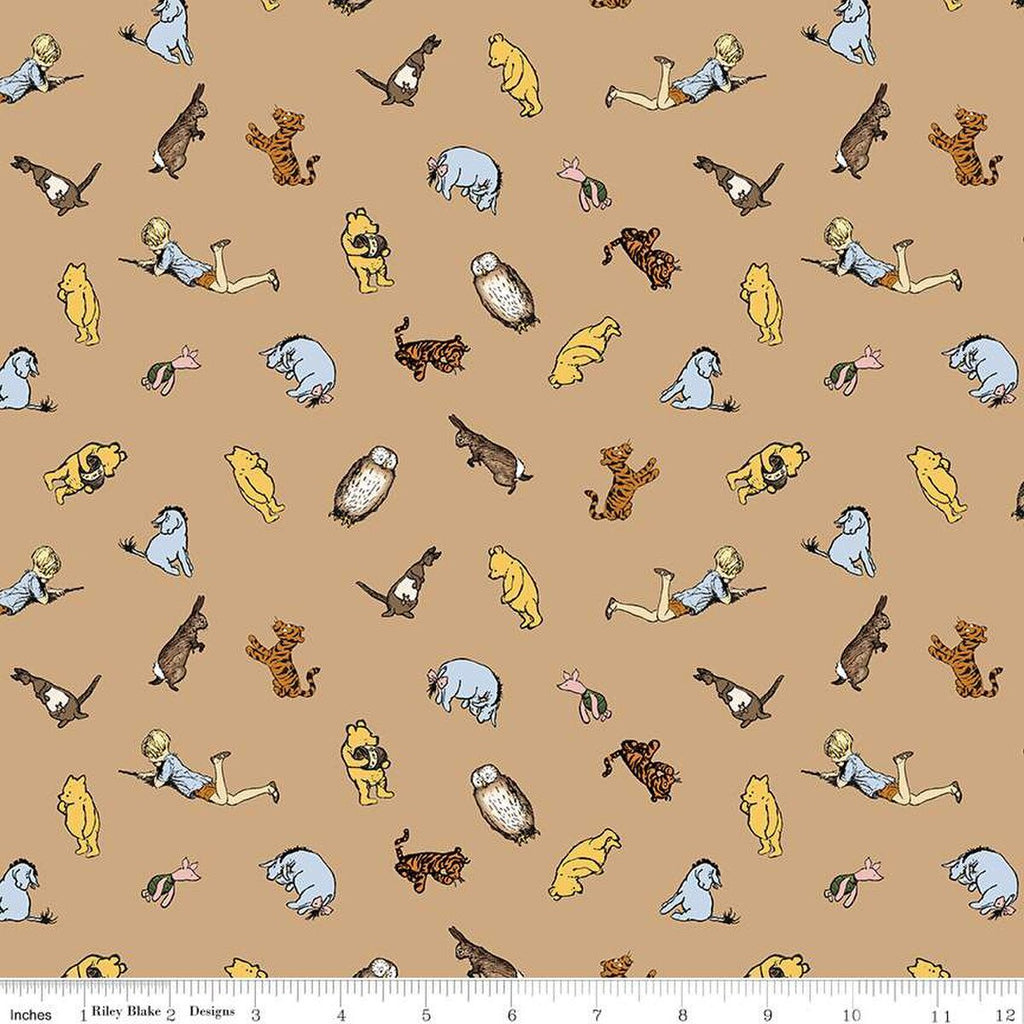 Bring a touch of whimsy to your quilting projects with this cheerful Winnie the Pooh - Characters Brown fabric. Made from 100% soft cotton, its bright brown background is sprinkled with playful Pooh-themed designs, perfect for adding warmth and joy to any creation. Ideal for quilting, this fabric combines comfort and charm to inspire your next crafty adventure.